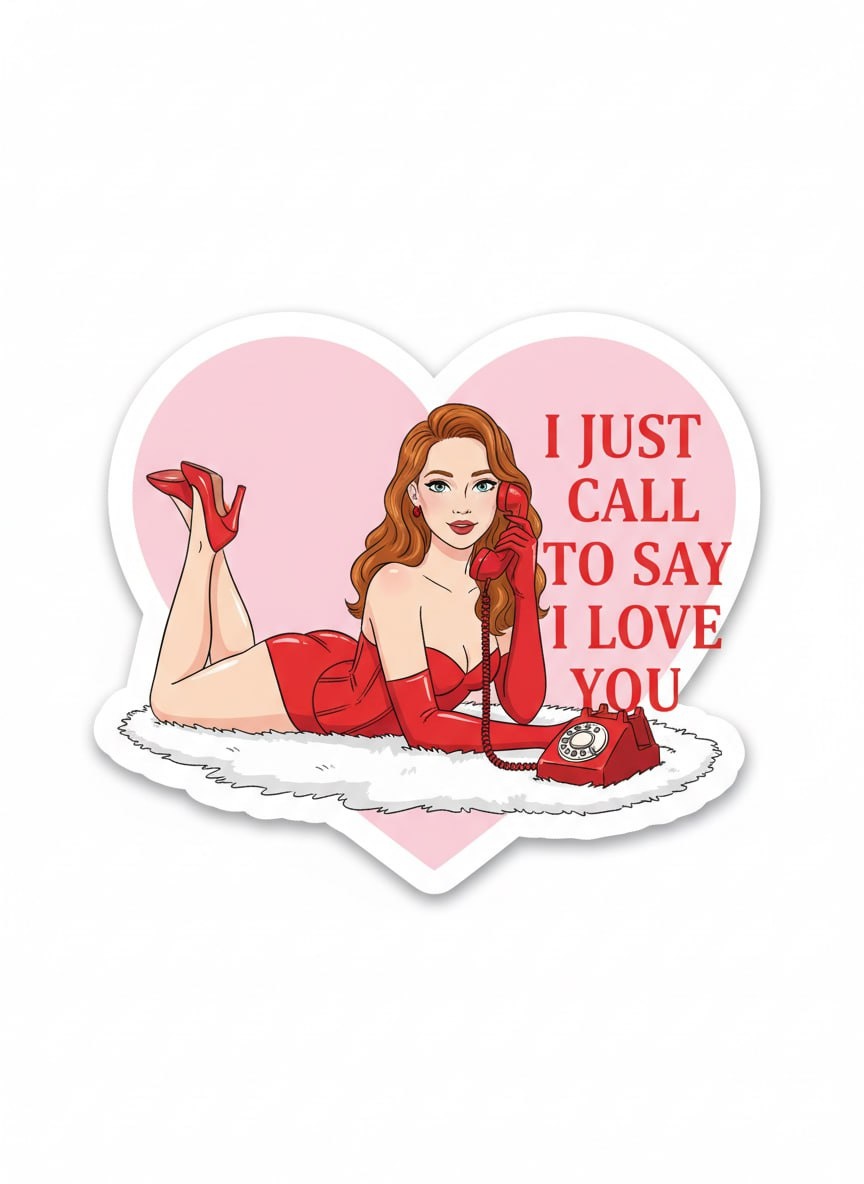 — Переходи в бот - https://t.me/picture_aibot?start=-nano — Текст без ошибок генерируется только в pro версии — Загружай фото и вставляй промт одним сообщением 🔥 Подари другу одну генерацию, просто отправь ему этот пост, если он ранее не использовал бот. Промт: Стикер-валентинка (die-cut), без фона (прозрачный), с толстой белой обводкой 6–10 мм и лёгкой тенью по краю. Внутри стикера — упрощённая глянцевая иллюстрация в стиле “cute glam pin-up”, но фотореалистичные черты лица сохранить (если есть загруженное фото — как референс 1:1, без усреднения). Большое пастельно-розовое сердце-бекграунд. На переднем плане девушка лежит на животе на белом пушистом коврике, в красном белье/корсете, красных длинных перчатках и красных каблуках, ноги согнуты вверх; рядом винтажный красный проводной телефон, трубка у губ/в руке. Справа на сердце — крупная красная serif-надпись ровными строками: “I JUST / CALL / TO SAY / I LOVE / YOU”. Палитра: розовый+красный+белый, чисто, без шума, ярко, контуры акк