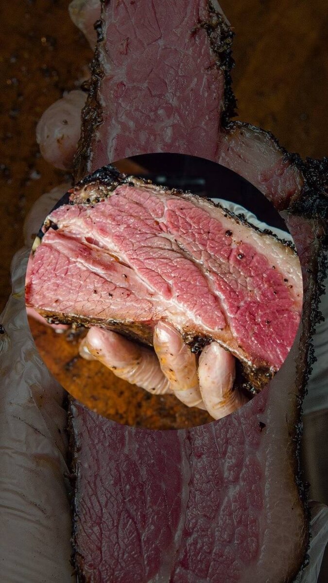 Долгое маринование и длительное копчение и на выходе пряный, солоноватый вкус.