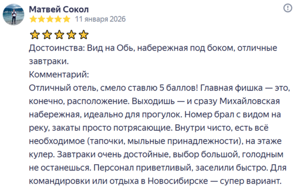 Выбирая отель для отпуска или командировки, хочется быть уверенным в каждом пункте: от чистоты подушки до дружелюбия персонала. Отель River Park на берегу привлекает своим удобным расположением и комфортными номерами. Но что говорят те, кто уже провел здесь ночь? Мы проанализировали десятки мнений на независимых площадках и напрямую от наших гостей, чтобы вы получили самую объективную картину.