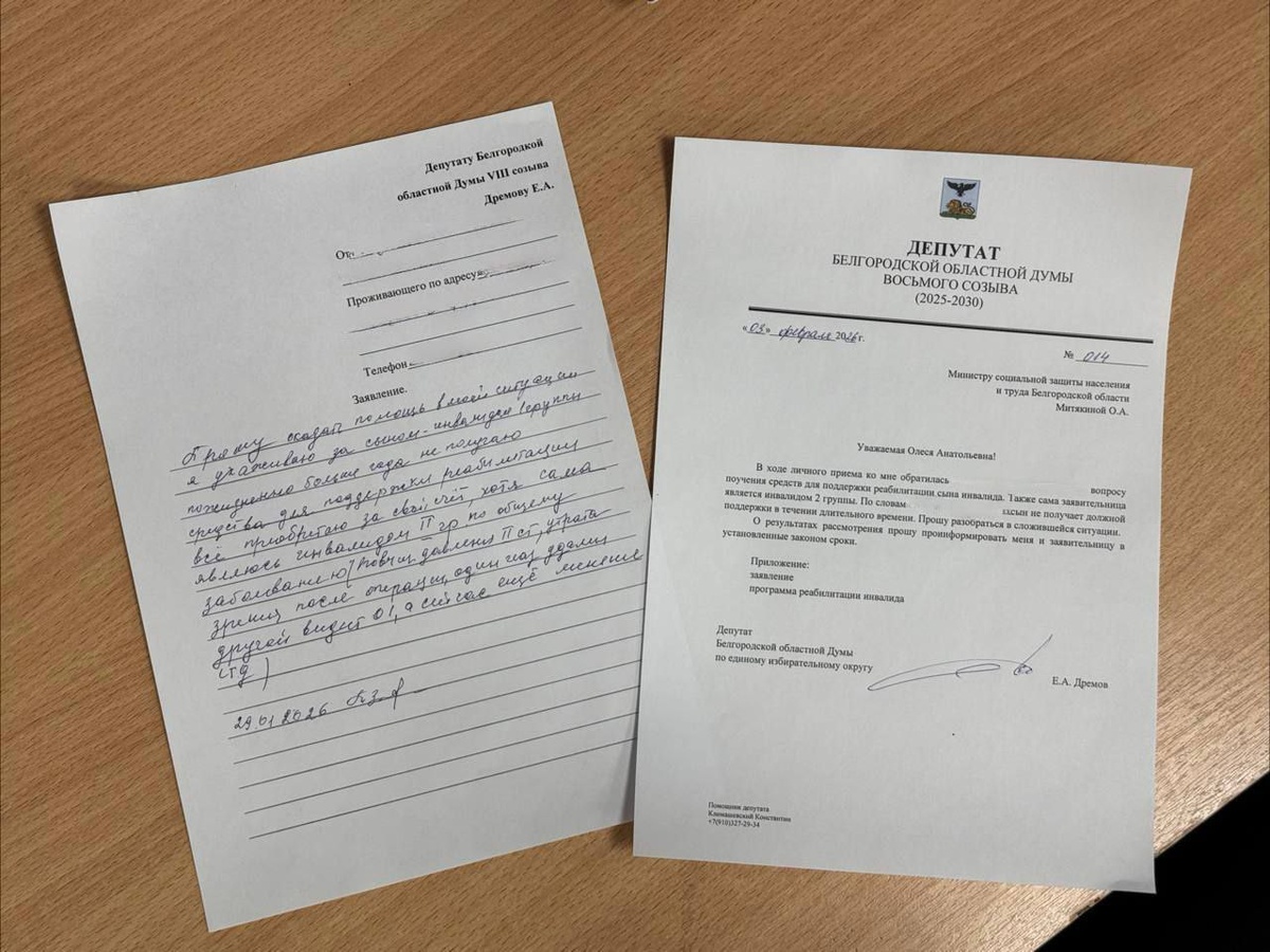 В приёмную депутата Белгородской областной Думы от ЛДПР Евгения Дремова обратилась жительница региона, осуществляющая уход за сыном с инвалидностью I группы. Женщина, сама имеющая инвалидность II группы, сообщила, что более года не может получить для сына положенные по закону средства реабилитации и вынуждена приобретать необходимое за свой счёт, несмотря на крайне ограниченные финансовые возможности. Евгений Александрович немедленно взял ситуацию под личный контроль и направил официальный депутатский запрос в Министерство социальной защиты населения и труда Белгородской области с требованием разобраться в причинах срыва реабилитации и обеспечить семью всем необходимым. «Подобные случаи недопустимы. Когда система социальной защиты даёт сбой, страдают самые уязвимые — люди, которые и так находятся в трудной жизненной ситуации. Наша задача — не только помочь конкретной семье, но и добиться системных решений, чтобы права каждого гражданина, гарантированные законом, неукоснительно соблюд
