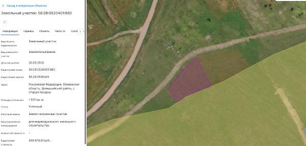 Название: Земельный участок из земель населенных пунктов с кадастровым номером 58:28:0520401:880, общей площадью 1557 кв.м., с видом