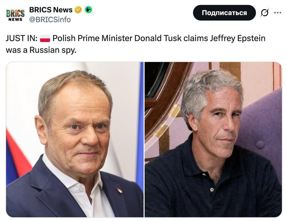 Польский премьер Дональд Туск, изучив документы по делу Эпштейна, пришёл к сенсационному выводу: по его мнению, скандальный финансист был не кем-нибудь, а российским агентом. Теперь Польша намерена создать спецгруппу, чтобы разобраться в этом «шпионском триллере». Туск считает, что главная угроза скрывалась не на острове педофилов, а в кабинетах Кремля. Подпишись на "Новый Взгляд"