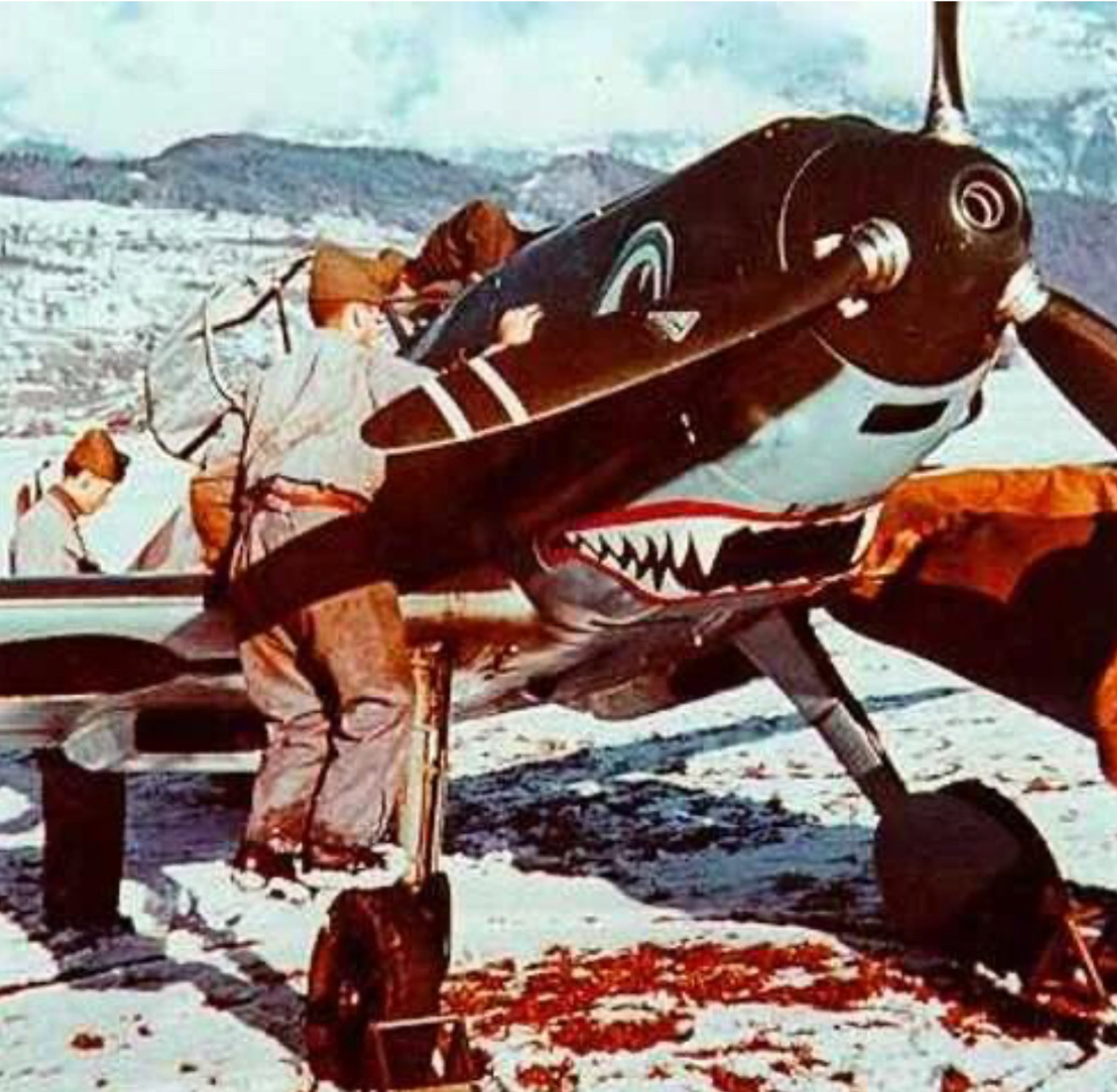 У швейцарских Bf 109 действительно часто была заметная, “кричащая” маркировка: красно-белые элементы, крупные опознавательные знаки, иногда декоративные детали вроде пастей. На первый взгляд кажется, что это почти комикс на фоне суровой войны.