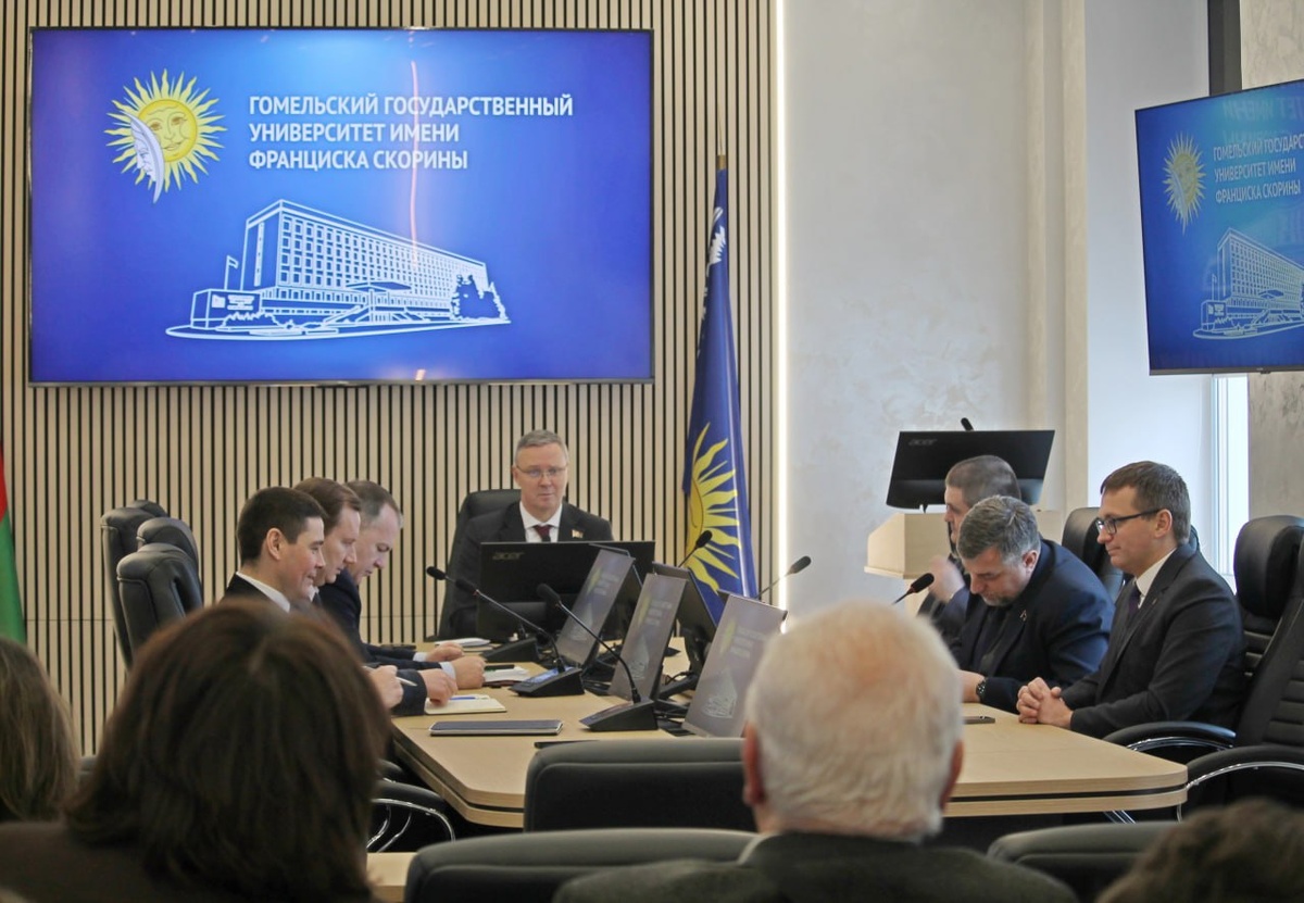📍В Гомельском государственном университете имени Ф. Скорины проходят встречи руководства вуза с профессорско-преподавательским составом и сотрудниками факультетов. ✅ На текущей неделе уже состоялись встречи с коллективами факультетов физики и ИТ, математики и ТП, истории и МК. 📌С отчетами о проделанной работе и планами дальнейшего развития выступили деканы факультетов. О ключевых результатах и актуальных задачах деятельности факультетов проинформировали проректоры университета. ❓Данные мероприятия предусматривают открытый диалог. Присутствующие имеют возможность задать представителям ректората вопросы, касающиеся не только развития факультетов, но и университета в целом.