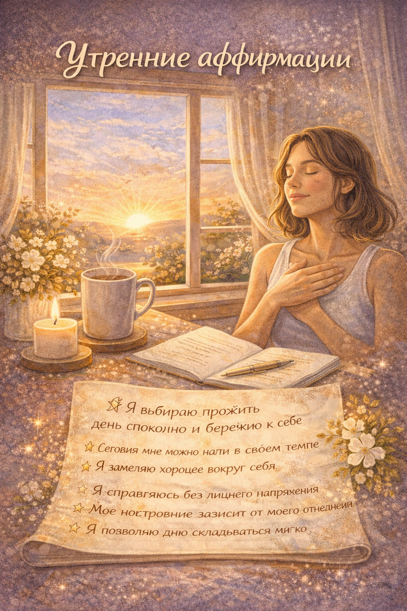 Но утро — редкий момент, когда внутренний голос ещё тихий и восприимчивый. Именно в это время проще всего сказать себе слова, которые будут поддерживать, а не подгонять.