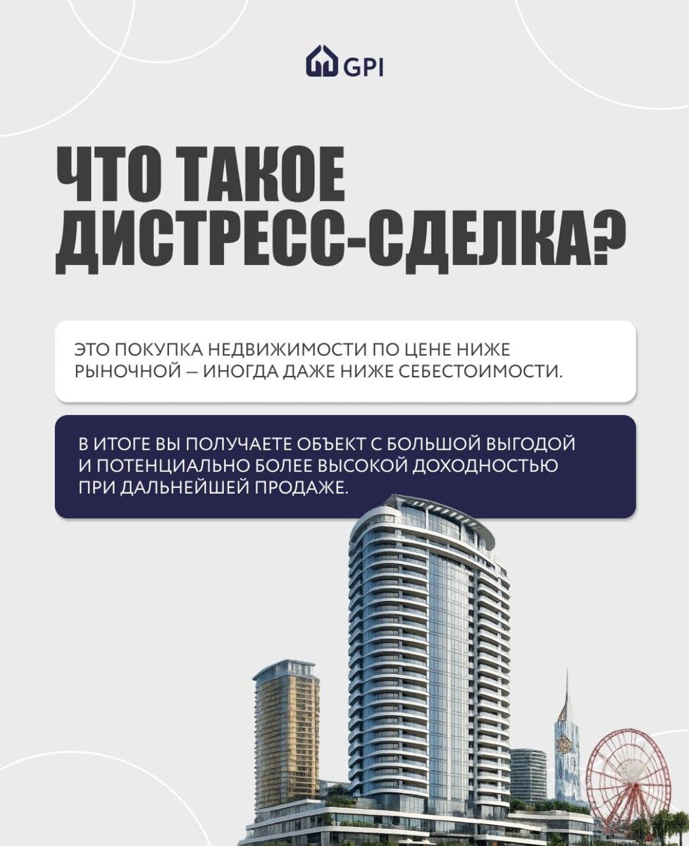 %? На рынке Батуми есть формат сделок, о котором многие слышали, но не все решаются использовать. А зря — иногда именно так покупают самые выгодные объекты. В карточках рассказываем о дистресс-сделках — читайте и сохраняйте себе, а если есть вопросы пишите нам @sales_GPI или оставьте «+» в комментариях. А вы бы купили дистресс-объект? Голосуйте реакциями: 👍 — Да, если хорошая скидка 🤔 — Зависит от объекта 🤝 — Предпочитаю стандартные сделки #Словарь_рынка