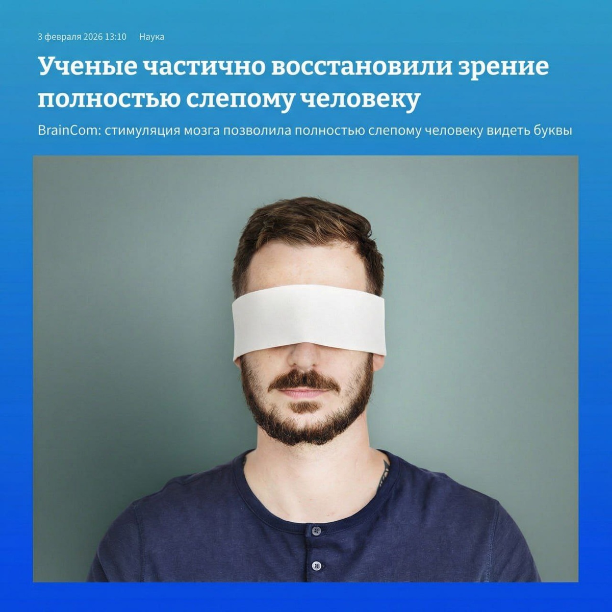 Мужчина потерял зрение на три года из-за повреждения зрительного нерва. В рамках эксперимента ученые установили ему кортикальный зрительный протез с 100 микро электродами, который стимулирует нервные окончания и вызывает фосфены — простые световые ощущения. Со временем пациент начал распознавать фигуры и буквы, а также стал более уверенно ориентироваться в пространстве. Исследования показали, что мозг обладает способностью восстанавливать зрение, даже при серьезных повреждениях. ⚡️ За гранью. Подписаться