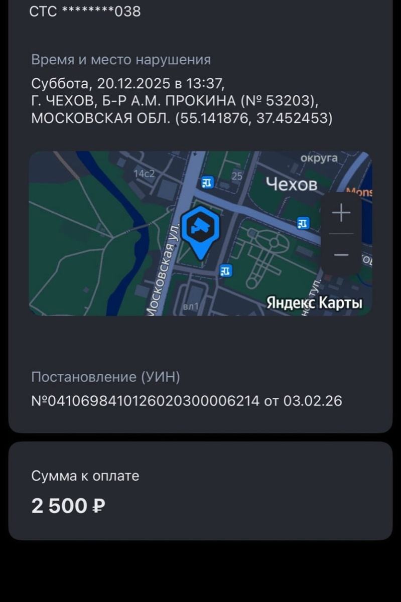 Об обустройстве платных стоянок в муниципальном округе Чехов говорится с осени прошлого года. В конце года власти отчитались, в частности, об обустройстве 83 платных машиноместа на улицах Дружбы, бульваре А.М. Прокина (напротив танка), Первомайской. Однако, не все знают про это новшество. Подписчица «Чехов Вид» сообщила о прилетевшем штрафе. «А давно ли в Чехове на против танка платная стоянка? Пришел штраф 2500, ставила машину там 20 декабря, штраф пришел вчера. Просто помню, что там ставили все а сейчас вот оно как, и там я не видела платежный столбик». Напомним, что жители Чехова выступили против введения в городе платных парковок. В настоящий момент в Чеховском городском суде готовится к рассмотрению иск к администрации. Предварительное судебное заседание назначено на 5 февраля.