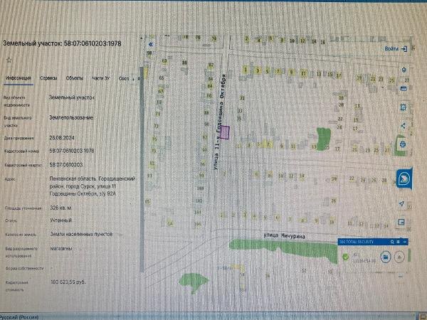 двадцать шесть) кв. м., из категории земель - земли населенных пунктов, с кадастровым номером 58:07:0610203:1978, местоположение: Российская Федерация, Пензенская область, Городищенский район, г. Сурск, ул. 11 Годовщины Октября, з/у 92А, разрешенное использование земельного участка – магазины Канал: Госземля Пензенская область Область: обл Пензенская Район: м.р-н Городищенский Населенный пункт: г.п. город Сурск, г Сурск, ул 11 Годовщина Октября Локация: Смотреть на карте ВРИ: Иной вид Кадастровый номер: 58:07:0610203:1978 Кадастровая стоимость: - Вид сделки: Аренда Площадь: 326 м² Начальная цена: 11500.00 руб. Дата завершения: 03.03.2026 Подробнее: ГИС ТОРГИ #госземля #земляотгосударства #земля #земельныйучасток #земельныеторги #торги #аукцион #арендаземли #аренда #пензенскаяобласть