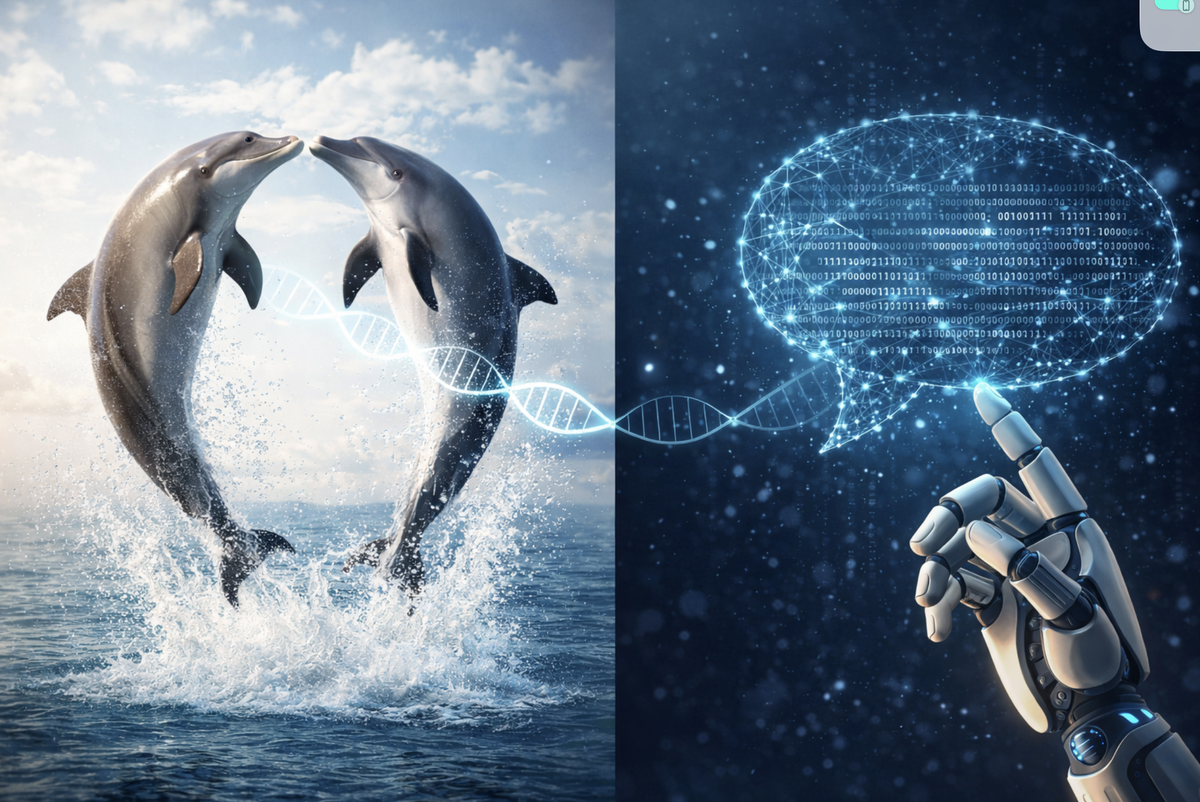 В 2011 году учёные сняли на видео кое-что удивительное. Тренер попросил двух дельфинов придумать новый трюк, которого они раньше не делали. Дельфины нырнули под воду, пообщались между собой... и вынырнули, выполняя синхронный акробатический номер, которому их никто не учил. Они спланировали. Договорились. Создали что-то новое вместе. Это не дрессировка. Это язык. Мы привыкли думать, что язык — исключительно человеческая способность. Но это не так. Киты передают песни из поколения в поколение. Вороны предупреждают друг друга о конкретных людях. Даже суслики — с мозгом размером с виноградину — могут комбинировать "слова" для описания размера, цвета и скорости хищника. Разница между человеческим языком и языком животных — не качественная, а количественная. Мы просто ушли дальше по той же дороге. И вот что интересно: языковые модели ИИ идут по этой же дороге. Они учатся сжимать мир в символы, комбинировать их и предсказывать, что будет дальше. Точно как мы. Точно как дельфины. О глубокой с
