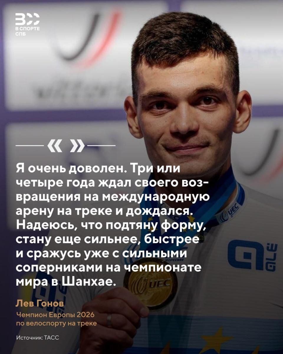 🤩 Вчера Лев Гонов вновь стал чемпионом Европы по велоспорту на треке, но думает петербуржец уже о чемпионате мира в Китае