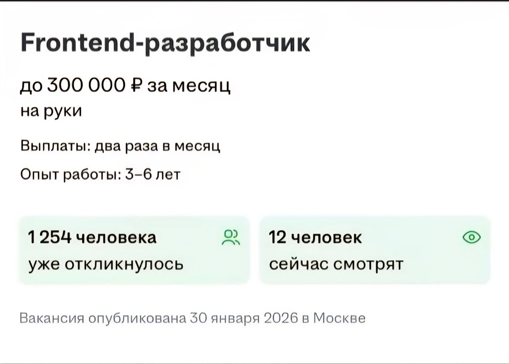 Теперь так — безвозвратно ... ИИ запустил Сингулярность Безвозвратности и не-достижимости осознания происходящего 💥🤔 Теперь становятся не нужны бухгалтеры, юристы, программисты в прежнем количестве. Только сравнивать их сложно 🤔 Чтобы стать хорошим юристом — нужен опыт, годы практики. А в программисты — сплошь подростки 👨💻 Если бы вы знали, сколько я натерпелся от них! Сколько нервов и денег было потрачено. Представьте: наиважнейший проект 🚀, а программисты постоянно обновляют свои резюме. И как только кто-то им кинет кость пожирнее — тут же бегут за косточкой, язык набоку 😛. И мой проект (а это внутренняя база компании!) — недоделан, и года разработки — в топке 🔥 И найти новых достойных — крайне сложно и долго. Каждый начинает по новой, ибо прошлое — «не гоже»... А теперь посмотрите скрин☝️ — за 1 день на одну косточку пожирнее выстроилась очередь из 1250 подростков! 🐕🦺📈 В надежде, что одному из них она достанется... Друзья, имейте совесть, честь, достоинство — и