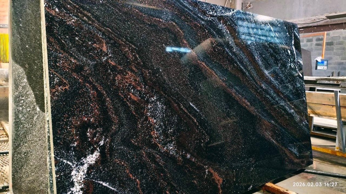 Хотим поделиться нашей красотой😍 Вот такие чудесные слэбы из Гранатового амфиболита Нигрозеро пилятся сейчас на заводе