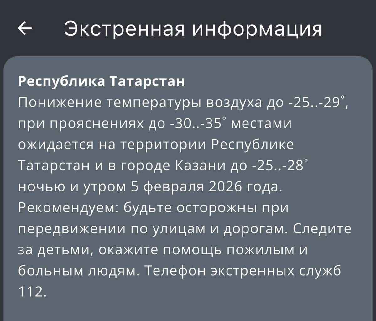 Морозы до -35 ожидаются ночью 4 февраля и утром 5 февраля, предупреждает МЧС.