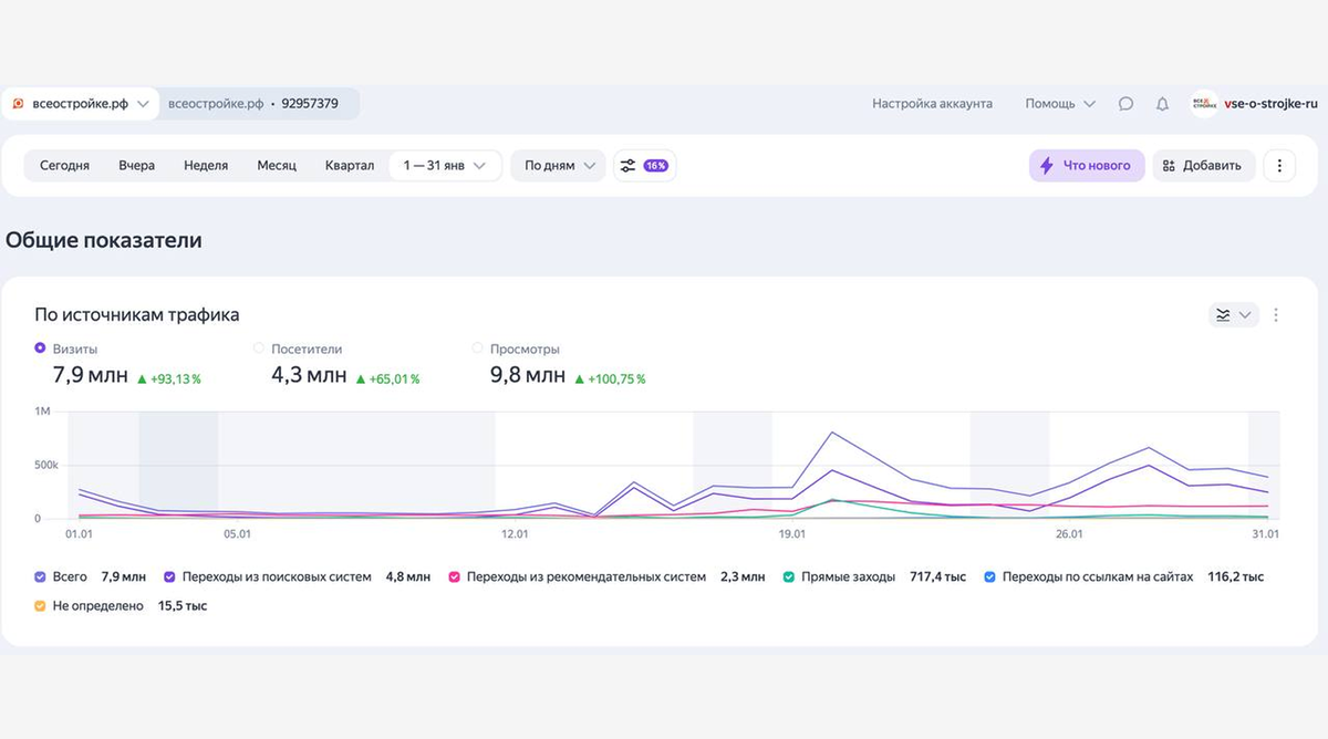 Очередной рекорд побит — на портале Всеостройке.рф за январь 4,3 млн уникальных читателей и почти 10 млн просмотров 🔥