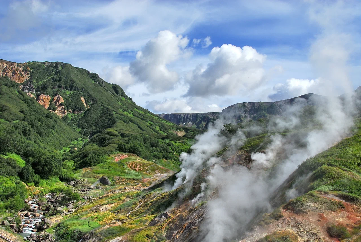 Среди дикой первозданной природы Камчатки спрятана одна из главных природных достопримечательностей России — Долина гейзеров. В мире всего пять долин, где под напором земли в небо взмывают мощные столбы пара и воды. Огнедышащие недра дают о себе знать каждые несколько минут — здесь сосредоточено около 30 активных гейзеров и сотни горячих источников, фумарол и паровых струй.