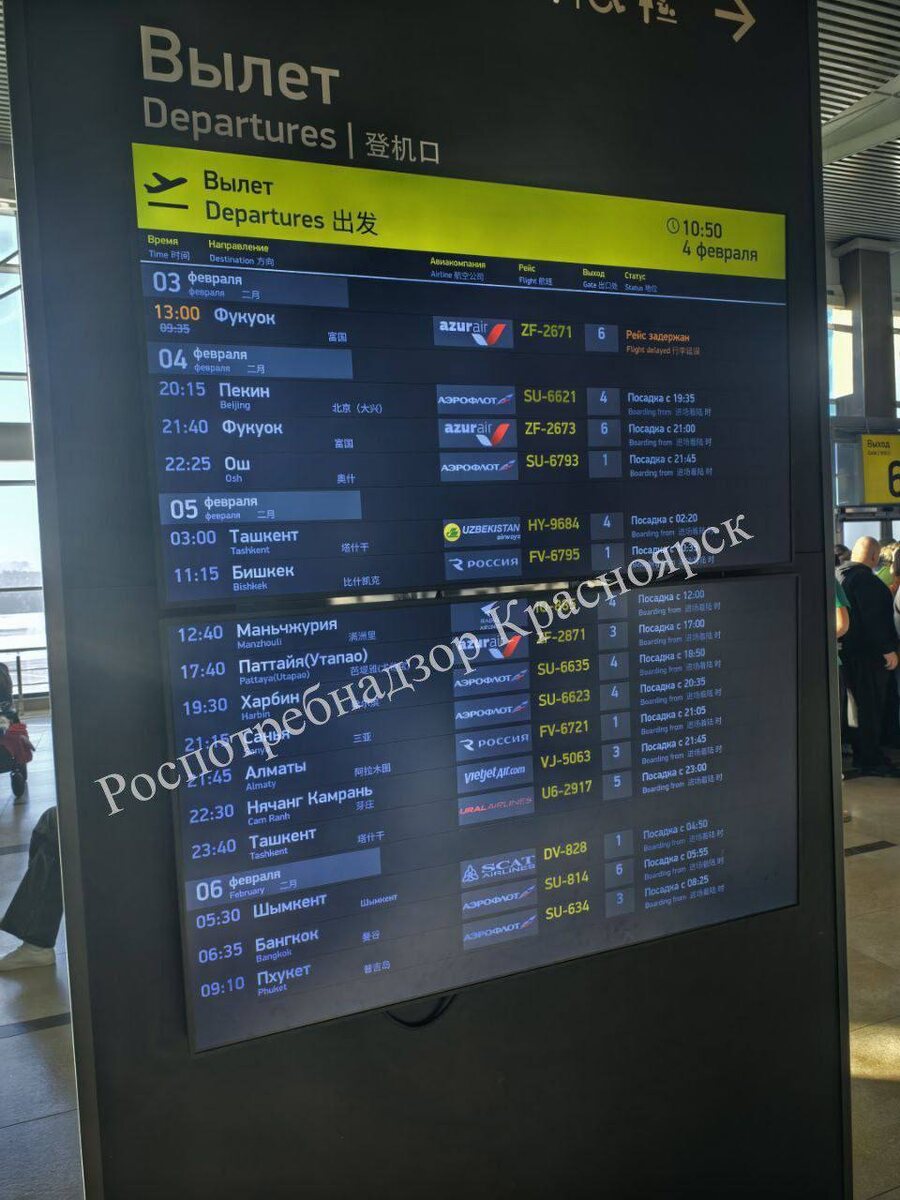 Рейс в Фукуок, который должен был вылететь вчера, 3 февраля в 09:35, задержан более чем на 25 часов, ожидают вылета свыше 300 пассажиров. Ожидающие обеспечены необходимым питанием и напитками, а также им было предоставлено проживание в гостинице. Также задержан рейс из Фукуока в Красноярск. Более 300 отдыхающих свыше суток не могут вылететь домой. Ситуация по вылету во Вьетнам из Красноярска и по прилету из Вьетнама в Красноярск в части соблюдения прав потребителей остается на контроле Управления Роспотребнадзора. Фото: Роспотребнадзор Красноярск 🤩Новости Сибири | Прислать новость 💜 Мы в MAX