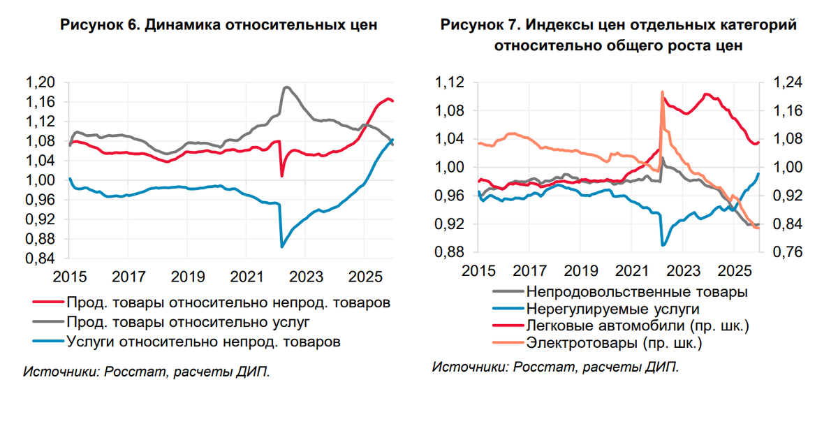 Декабрь порадовал низкой инфляцией, а январь принес резкий рост цен. Что происходит? В новом бюллетене «О чем говорят тренды» Банк России объясняет эту волатильность. • Декабрь 2025: Рост цен замедлился (2.6% в месячном выражении). Причина — временные факторы: хороший урожай, теплая погода, удешевление топлива. • Январь 2026: Резкое ускорение (+1.91% за первые 26 дней!). Главные драйверы — повышение основной ставки НДС до 22%, индексация тарифов и акцизов. Этот скачок в основном носит временный характер, как и прошлогоднее замедление. Однако есть важный риск: сильный рост цен в январе может поддержать высокие инфляционные ожидания населения и бизнеса, что в свою очередь может затянуть процесс общего замедления инфляции. Показатели базовой инфляции (то есть без самых волатильных товаров) в декабре даже немного выросли. Особенно быстро дорожают услуги (бытовые, медицинские, страховые). Это сигнал о сохраняющемся инфляционном давлении в экономике. ЦБ ожидает, что после отыгрыша январск