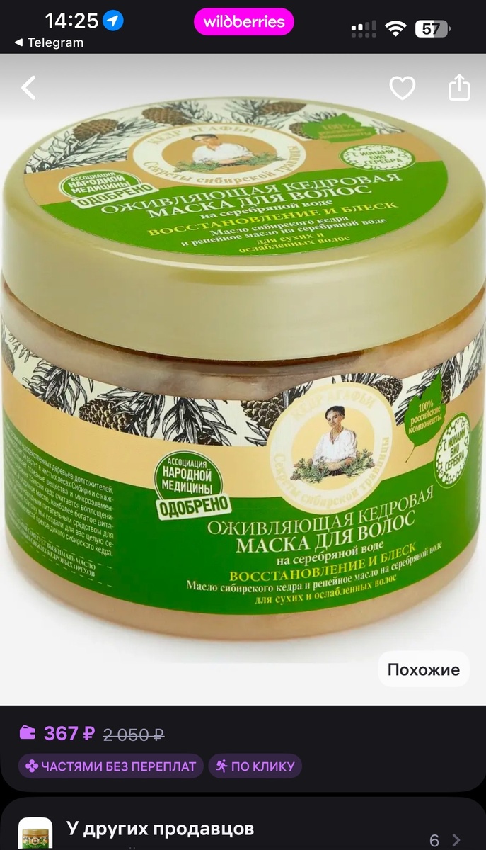 Рецепты Бабушки Агафьи Маска для волос КЕДРОВАЯ ОЖИВЛЯЮЩАЯ