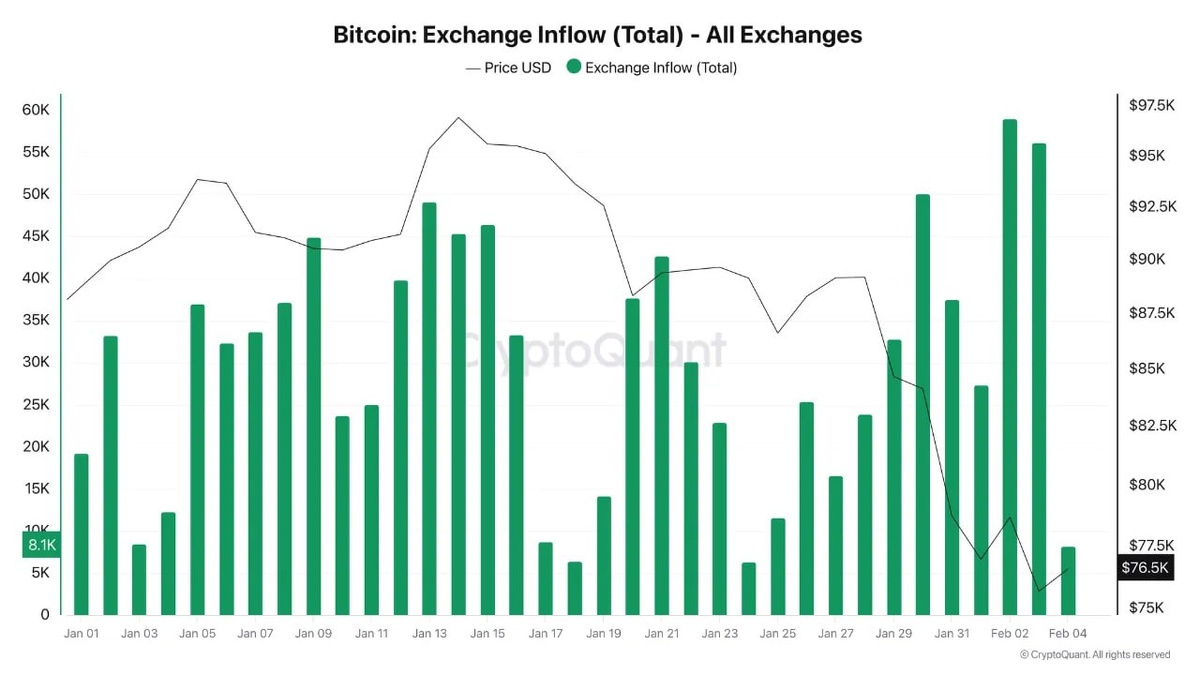 🔸По данным CryptoQuant, в период с 2 по 3 февраля на Binance поступило до 59 тыс