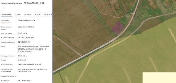 Название: Земельный участок из земель населенных пунктов с кадастровым номером 58:28:0520401:881, общей площадью 1673 кв.м., с видом