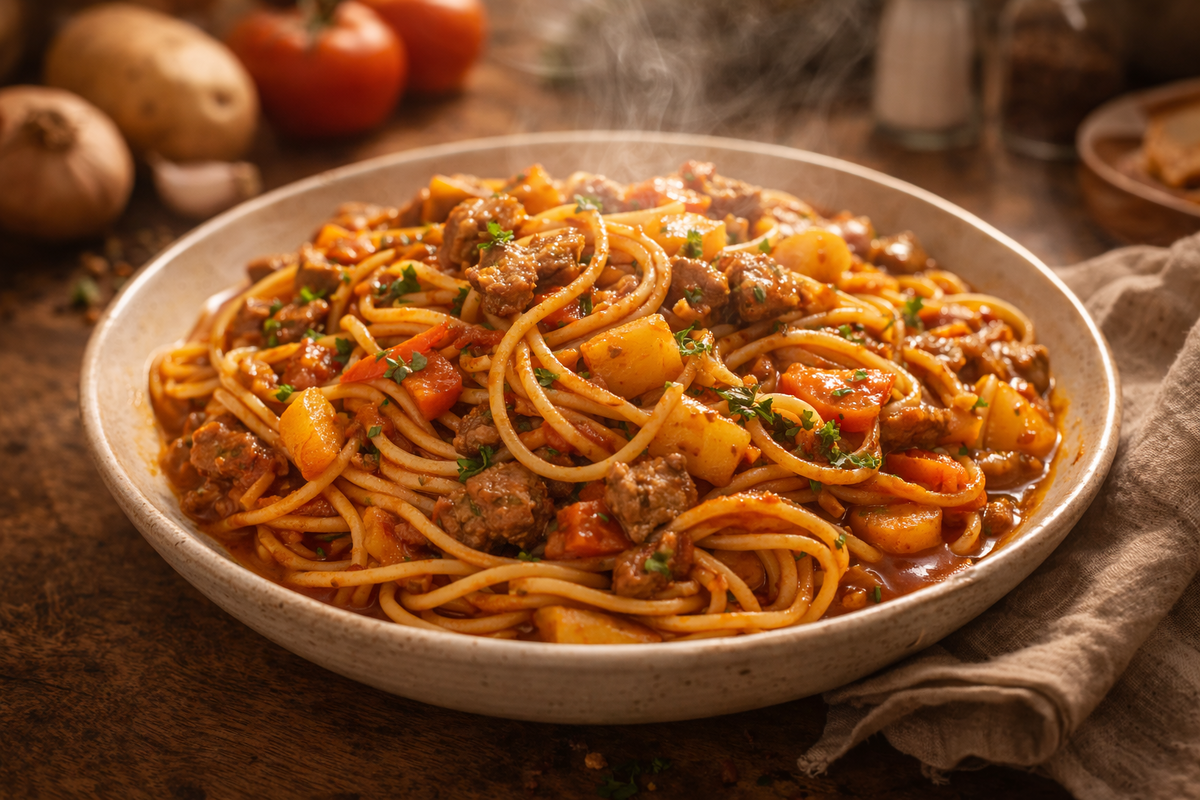 Лагман «по-домашнему»: ароматная подлива и спагетти - ужин, который любят все 😋
