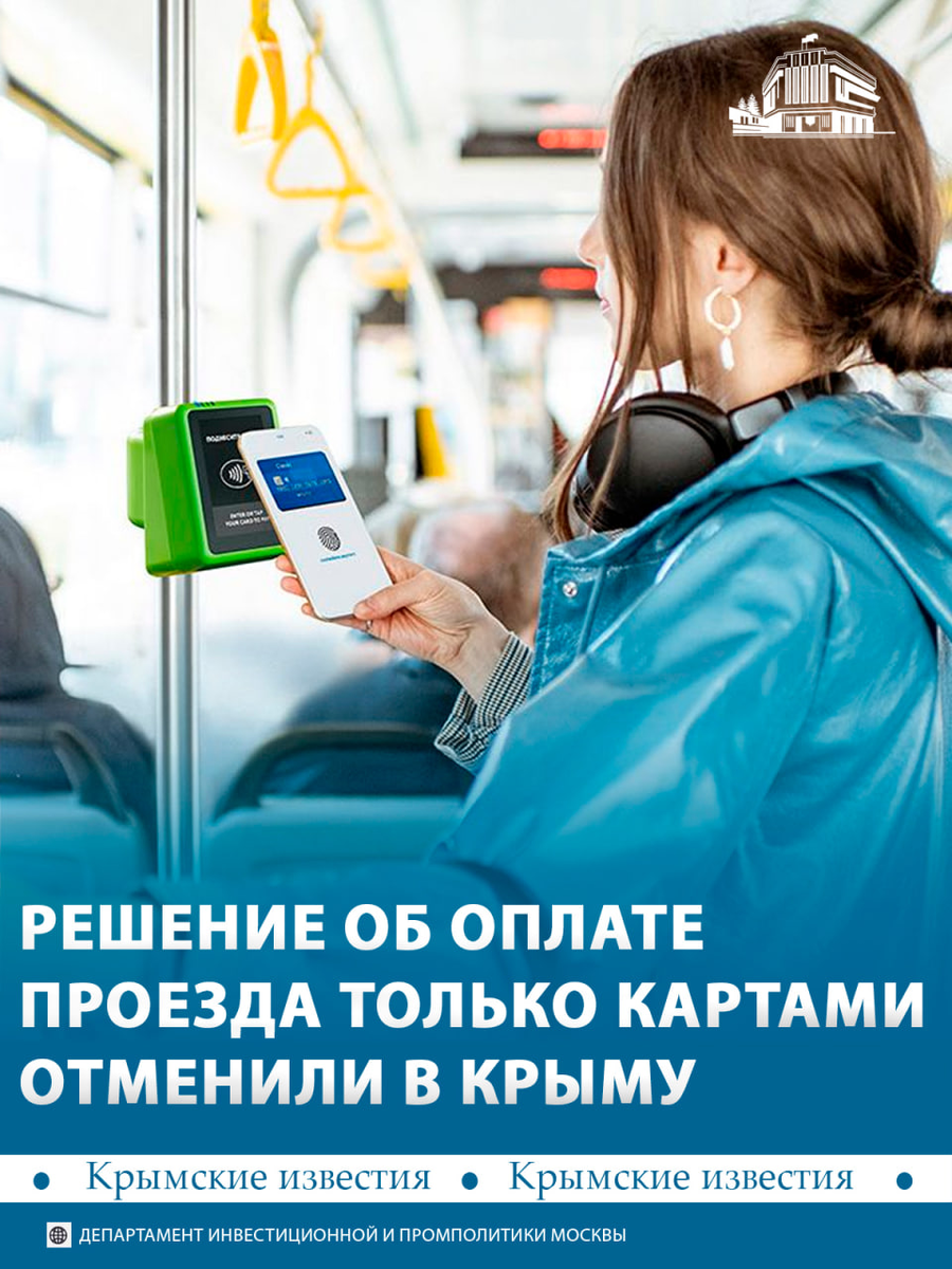 Наличку вернули. В транспорте Крыма снова можно расплатиться за проезд любым удобным способом, включая и наличную оплату. Изменения вступили в силу с 4 февраля, сообщил Сергей Аксёнов. «Перевод системы оплаты проезда в общественном транспорте ГУП РК "Крымтроллейбус" исключительно на безналичную основу является преждевременным», – подчеркнул глава республики. Мы в телеграм 👉 https://t.me/newcrimiz