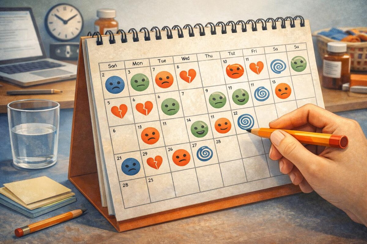 Той, которая часто кажется не такой важной, как, например, выполнение необходимых обязанностей на работе или дома. Из-за этого легко может сложиться впечатление, что с психологической жизнью всё более-менее нормально. Мы работаем, общаемся, что-то планируем, что-то решаем. Но ощущение «я в порядке» нередко держится не на реальном контакте с собой, а на привычке терпеть. Качество психологической жизни можно отслеживать так же просто, как количество и качество сна или съеденные калории. Достаточно в течение месяца отмечать в календаре дни, в которые: — вы чувствовали себя одиноко — вы довольно продолжительно злились на людей или ситуации — вас не понимали и не разделяли вашу точку зрения — вас не слышали — вам хотелось всё бросить и уйти — вам казалось, что всё бесполезно — вы чувствовали себя не на своём месте — вы ощущали пустоту или «как будто ничего не чувствую» — вы жили на автомате, без интереса и включённости — вам было сложно радоваться даже хорошим событиям — усталость не п