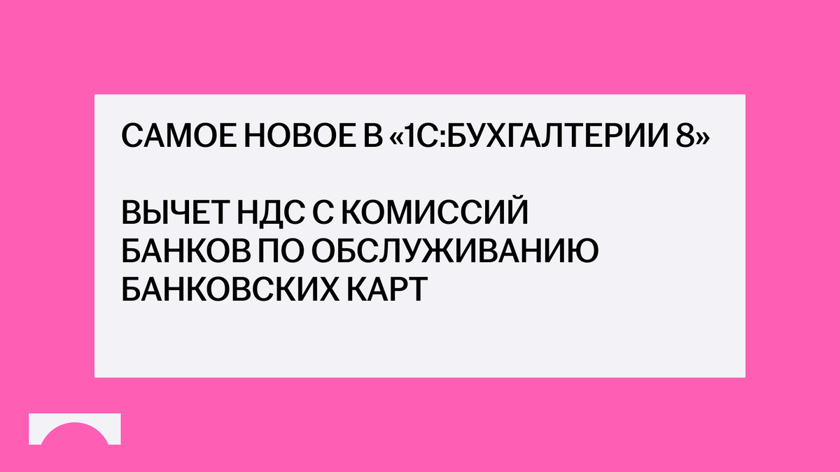 В программе «1С:Бухгалтерия 8» начиная с версии 3.0.189 с 01.01.2026 услуги по обслуживанию банковских карт будут облагаться НДС. Поэтому добавлена возможность выделять и принимать к вычету НДС с комиссий банков по операциям с банковскими картами. Она пригодится организациям на общей системе налогообложения и на УСН с НДС со ставкой 22%, которые вправе принять к вычету входной НДС. Комиссии банка в этом случае учитываются аналогично другим услугам: 1. Удержанная банком комиссия отражается как аванс по документу поступления на расчетный счет по платежным картам. 2. Комиссия банка учитывается в расходах, НДС выделяется по документу поступления услуг, в котором указан счет-фактура полученный. 3. НДС принимается к вычету в зависимости от указанной в счет-фактуре настройки – сразу при получении счета-фактуры или при проведении регламентной операции «Формирование записей книги покупок». Чтобы воспользоваться, потребуется настроить отражение комиссии в расходах с 2026 года. Открыть настройк