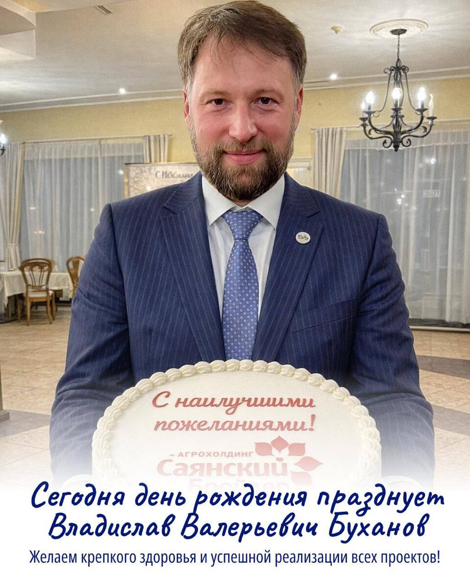 🎉 Сегодня день рождения отмечает Владислав Валерьевич Буханов — председатель совета директоров агрохолдинга «Саянский бройлер
