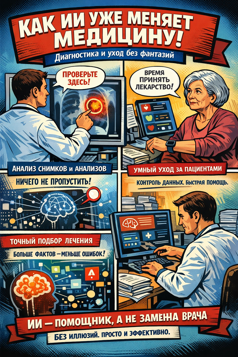 Если смотреть без иллюзий, ИИ делает медицину более аккуратной. Меньше спешки. Меньше работы «на глаз». Больше опоры на факты.