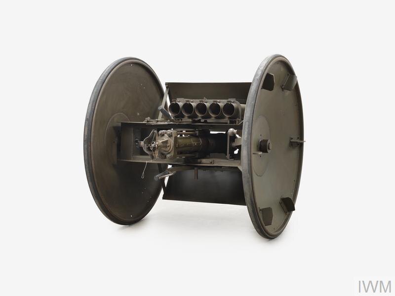 Или ПУШКА СМИТА. Про судорожные попытки британцев после поражения под Дюнкерком создать хоть что-нибудь, способное остановить тевтонские орды, я писал в статьях МИНОМЁТ ЛИВЕНСА, АМПУЛОМЁТ НОРТОВЕРА, СТЭН, ЛАНЧЕСТЕР, БОМБА ОЛБРАЙТА И УИЛСОНА, БОМБА ВУЛВОРТА, ГРАНАТА ХОКИНСА и пр. Но это не предел! В 1941 году отставной майор британской армии Уильям Х. Смит, управляющий директор компании Trianco Ltd., занимающейся проектированием конструкций, представил премьер-министру Великобритании Уинстону Черчиллю довольно необычный и весьма оригинальный проект. ОРУДИЕ СМИТА в походном состоянии напоминало небольшую, массой всего 270 кг, пушку с двумя огромными дискообразными металлическими колёсами, у которых вместо полноценных шин были приклеены резиновые бандажи. Ствол представлял собой стальную трубу длиной 1,37 метра и калибром 76,2 мм. На том же лафете крепился и стальной лист, призванный защитить расчёт от огня противника. В конструкции отсутствовала пневматика, пружины, амортизаторы и опо
