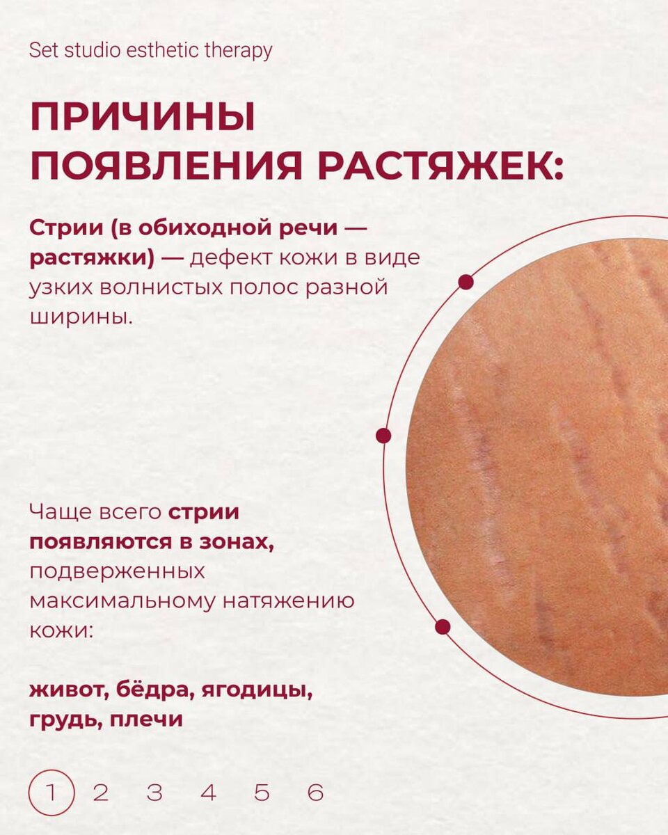 Их хочется скрыть, замаскировать, а лучше — избавиться от них, вернув коже ровность и ухоженный вид. Смотрите слайды➡️ мы подготовили для вас подробный гайд по теме. После курса процедур растяжки становятся менее выраженными, кожа — более ровной и плотной по текстуре. Это деликатный и обоснованный подход к коррекции стрий, а не маскировка. Записаться на бесплатную консультацию к нашим косметологам по ссылке ➡️Записаться онлайн 📍г. Екатеринбург, ул. Академика Ландау, 38/2 Тел. 8 (912) 646-25-25 Insta | Telegram | Сайт |