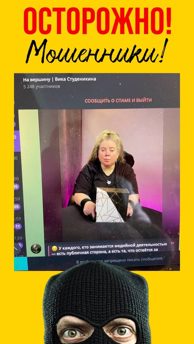 ! Друзья, важная информация! Мошенники создали новый фейковый канал и начали массово добавлять туда моих учеников и подписчиков. Если вы оказались в подобном канале или группе, где от моего имени обещают «золотые горы» на крипте, инвестициях или других финансовых операциях — это НЕ мой канал! Пожалуйста, будьте бдительны и не дайте себя обмануть. Как распознать обман: • Смена профиля. Моя специализация — только Таро, магия и эзотерика. Я никогда не занималась и не занимаюсь финансовыми рынками, инвестициями или криптовалютой. • Личные сообщения. Я никогда не пишу первой в личку и ничего не навязываю. Если вам пришло «выгодное предложение увеличить капитал» — это 100% мошенники. • Знак качества. Мой официальный канал имеет метку А+ и внесен в госреестр. Всё остальное — подделка. Что делать? Не вступайте с ними в диалог. Просто жмите кнопку «Пожаловаться» на аккаунт, Добавить в черный список/Заблокировать и сразу отправляйте их в бан. Сомневаетесь? Проверьте! Если у вас возникли