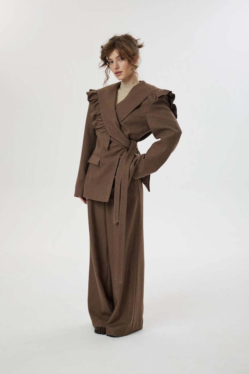 невероятной красоты костюм из брюк палаццо и сложного жакета со множеством изысканных деталей🤎 Жакет, 32000₽ размер onesize Брюки, 16000₽ размеры XS, S, M, L пока нет на сайте но уже доступно в магазине ____________ Maker, Восстания 3-5 резерв для примерки и другие вопросы в MakerBot