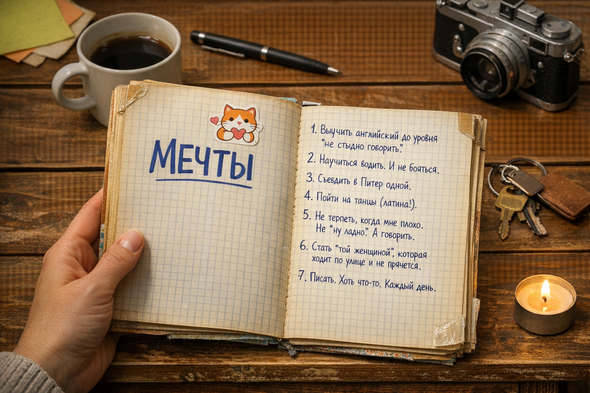 Потому что «мечты» — это слово из прошлого, как «дискета» или «косметичка с блёстками». У меня последние годы были не мечты, а списки: купить, оплатить, не забыть, забрать, приготовить, созвониться, «мам, я на пять минут», «а можно без острых углов?», «я потом».