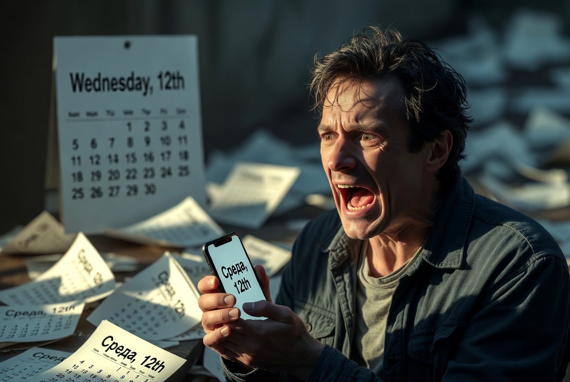 Проснулся от будильника. Взял телефон — среда, двенадцатое. Я замер. Посмотрел ещё раз. Среда. Двенадцатое. Подумал — сбой часов. Перезагрузил телефон. Включился — среда, двенадцатое. Посмотрел на календарь на стене — среда, двенадцатое.
