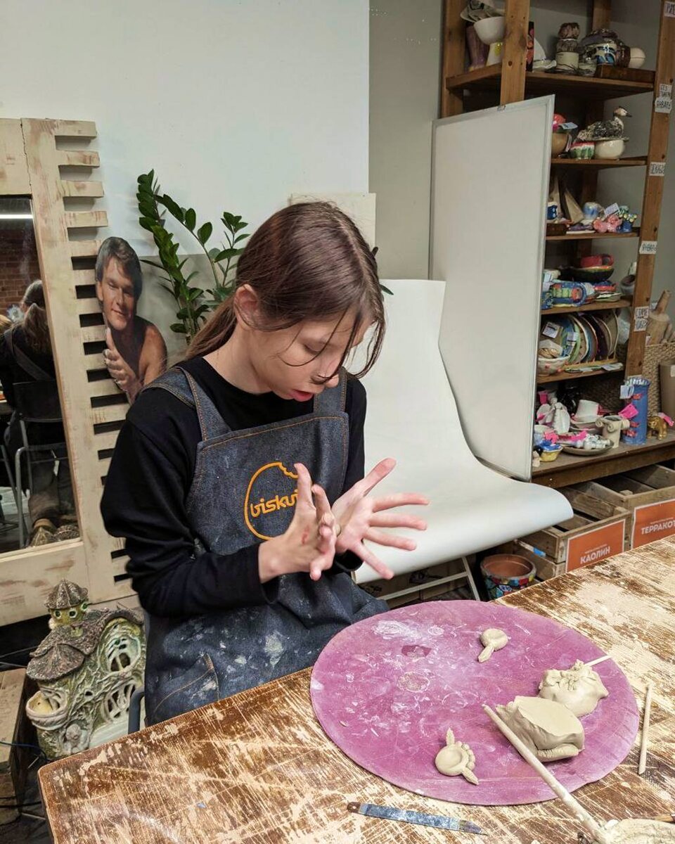 На фото — занятия в гончарной мастерской. Дети и родители здесь вместе работают с глиной: пробуют, ошибаются, смеются, делают что-то общее руками. Рядом — специалист фонда и мастера-волонтёры. Они поддерживают процесс и атмосферу, в которой можно быть собой и быть вместе. Занятия проходят благодаря партнёрам: студии «Бисквит», мастерской «Странное место» 💛 За каждым занятием стоит большая невидимая работа. Одно такое занятие — 10 000 рублей. Поддержать этот формат помощи можно на сайте фонда 🔗