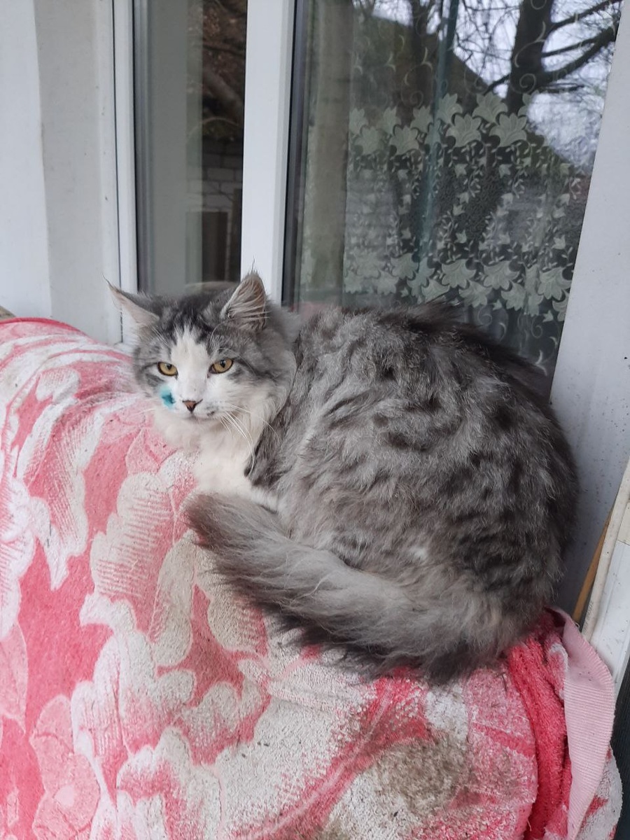 Нет, это не герой моего рассказа, это котик, которого я пока зову длинно, официально - Изумрудная Щёчка. Изумрудная она потому, что котик подрался, и его хозяева забрызгали ранку антисептиком. Этот прекрасный, очень красивый кот появился в нашем огороде года два назад. Тогда у нас царствовал Шарапов, и чужим котам был не рад. То ли поэтому, то ли потому, что Изумрудная Щёчка ещё не понял, что и как, но кот меня страшно боялся, не подпускал даже на расстояние, с которого я могла его сфотографировать. Я лишь издалека любовалась его пушистой шубкой и роскошным хвостом. А в прошлом году что-то изменилось. Видимо кот понял, что я не причиню ему вреда, поэтому стал наведываться на наш балкон, орать, вызывая всех наших дам на любовное свидание (дамы, лишённые всех необходимых прелестей, выходили чтобы подраться и показать, кто хозяйка в огороде), а несколько дней назад произошло самое настоящее чудо: кот разрешил себя погладить. Правда я была очень осторожна и едва коснулась прелестной шерстк