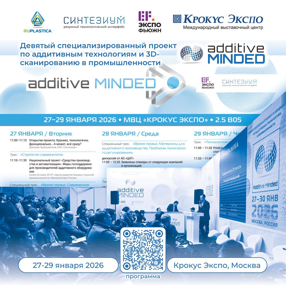 ! Для всех, кто следит за развитием аддитивных технологий в России, стали доступны для скачивания презентации спикеров с главной отраслевой конференции Additive Minded 2026, которая прошла в конце января в рамках выставки Ruplastica. Три насыщенных дня, десятки экспертов из ведущих компаний и научных центров делились самым ценным: практическим опытом, прорывными кейсами и стратегическими взглядами на будущее. Теперь ключевые доклады по всем десяти трекам деловой программы — от «Стратегии суверенитета» и «Экономики аддитивного производства» до «Цифрового двойника» и «Новой инженерной элиты» — собраны в одном месте. Вы можете изучить презентации о внедрении отечественного оборудования, расчете рентабельности, новых материалах, строительной 3D-печати и даже о том, как работает ферма из 1000 принтеров или как ИИ генерирует 3D-модели. Это уникальная база знаний для инженеров, технологистов и руководителей, которая поможет не пропустить важнейшие тренды года. Ознакомиться с программой пр