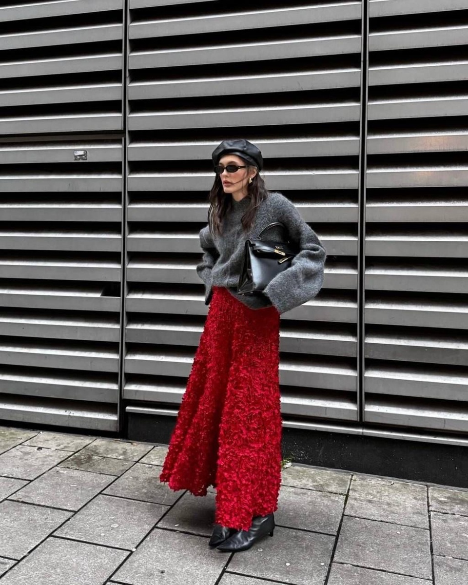 Первый и самый очевидный вариант — это цвет или принт. Юбка может быть насыщенной по оттенку или с интересным принтом.