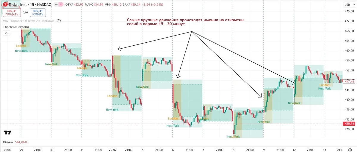 На открытии происходит массовый приток ликвидности. Институционалы исполняют накопленные за ночь ордера, крупные игроки набирают позиции, алгоритмы начинают отработку стратегий. Все это создает мощные импульсные движения, на которых можно зарабатывать.