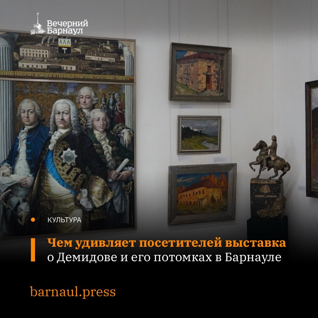 открылась выставка «Демидовы в изобразительном искусстве». Здесь представлены произведения живописи, графики, скульптуры, декоративно-прикладного искусства из коллекции музея, мастерских художников, музея «Мир времени». Именно династия Демидовых своей деятельностью способствовала развитию не только промышленности, но и культуры. Ведь среди представителей этой династии были благотворители, учёные, меценаты, библиофилы, просто ценители искусства. 📌 Подробнее о выставке читайте на сайте. 📬 Подписывайтесь на наш канал в MAX @barnaul