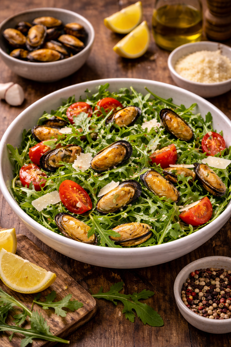 Но именно это сочетание дает вкус ресторана за десять минут. Салат с мидиями и руколой готовят в те моменты, когда не хочется тяжелой еды, но хочется удовольствия. Это блюдо про теплый вечер, про бокал вина, про разговоры без спешки. Его делают быстро, едят медленно и почти всегда удивляются, насколько все просто. Такой подход к еде полностью совпадает с философией канала «Вкус мира». Если вам близка кухня без показной сложности, ненавязчиво напомню про наш телеграм канал «Вкус мира», там мы регулярно делимся подобными находками. Мидии дают глубину и морской характер. Рукола добавляет свежесть и легкую горчинку. Заправка связывает все в единый вкус, не перебивая, а подчеркивая. Это салат, который не маскируется под основное блюдо, но при этом легко становится главным. Используйте готовые мидии в раковинах или без них, но хорошего качества.