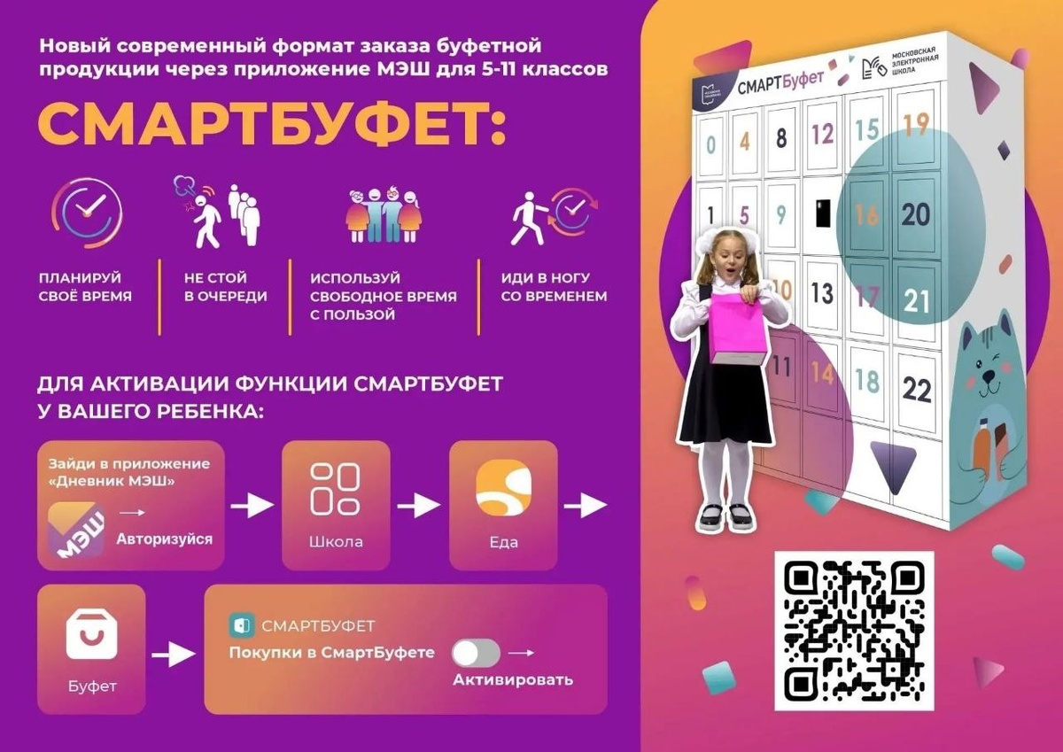 ! ❗Напоминаем, что в корпусе 603 а работает СмартБуфет – это суперсовременный и удобный способ вкусно и полезно перекусить прямо на месте. 🥙Вы можете сами выбирать и заказывать всё, что захотите, через привычное приложение "МЭШ". Это позволит заранее спланировать свой обед или перекус, учитывая все ваши предпочтения. 🔼Чтобы всё было максимально просто и понятно, переходите по ссылке и узнайте, как пользоваться СмартБуфетом: https://school.mos.ru/help/questions/app-diary/food/?q=10670 👍Мы уверены, что СмартБуфет станет отличным дополнением к вашим регулярным завтракам и обедам, сделав их более разнообразными и доступными в любое время! 🇷🇺Школа 854 теперь и в МАХ #ДОНМ #НашеПитание #Школа854
