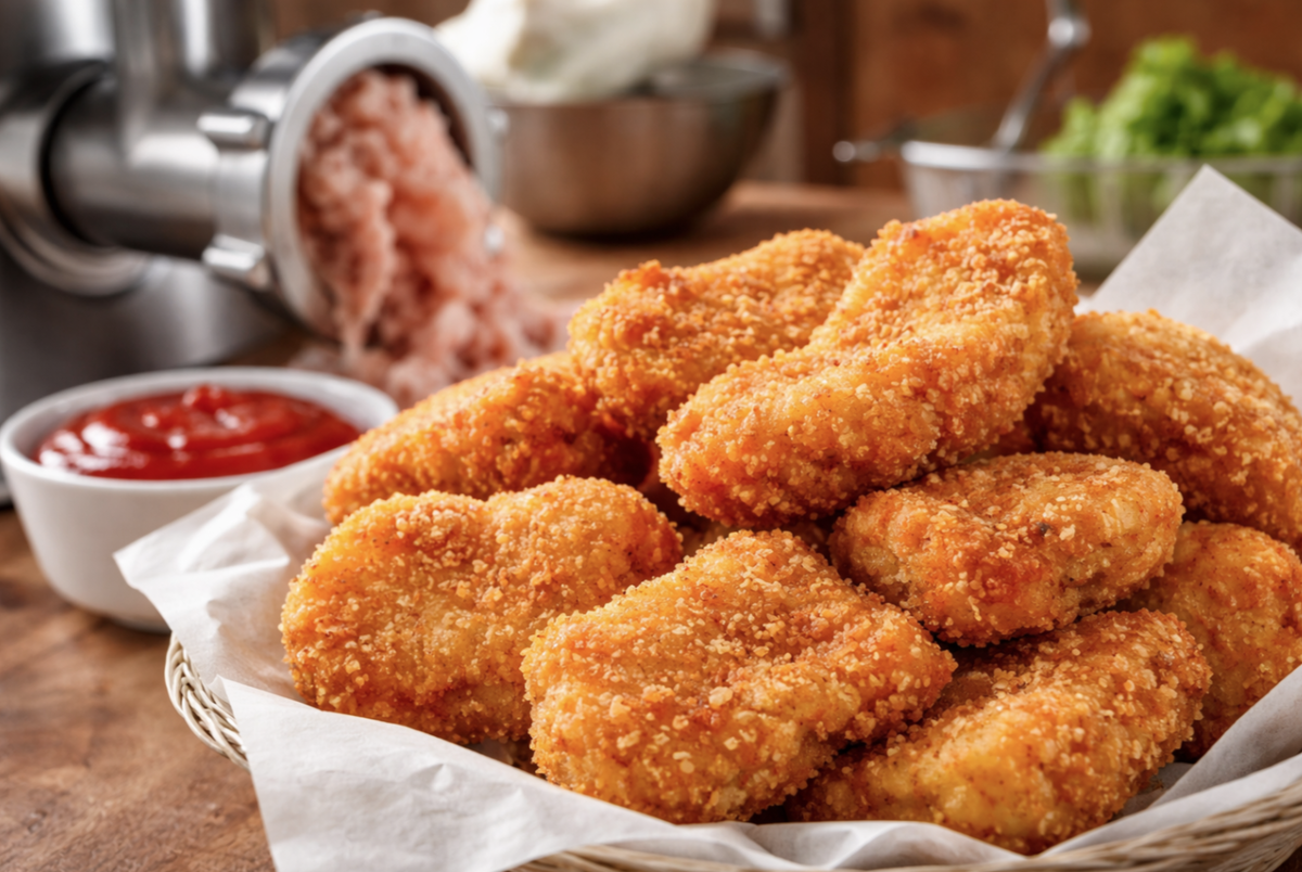 Сегодня я расскажу вам, как я однажды по-настоящему задумался о наггетсах. Не как о еде на бегу, а как о продукте с характером и историей. Я много лет готовлю курицу по-разному, жарю, запекаю, тушу, пробую новые панировки, сравниваю текстуры. И долгое время был уверен, что наггетсы - это просто мелко нарезанная курица в сухарях. Ну что тут сложного, думал я. Беру кусочки, обваливаю, жарю, подаю. Почти так же, как делают дома. Но на кухне я люблю проверять привычные вещи. Беру филе, режу аккуратно, делаю одну партию наггетсов. Потом беру ту же курицу, но пропускаю через машину для фарша, добавляю специи, перемешиваю, формую, панирую, жарю. Пробую и сразу замечаю разницу. Текстура другая. Сок внутри держится иначе. Кусочек получается ровным, мягким, одинаковым от края до центра. Я ем и понимаю, что это уже не просто нарезанная курица. Я начинаю вспоминать ресторанную практику. В больших объемах никто не режет курицу вручную на идеальные кусочки. Я видел, как это делают на производстве.