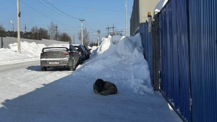Гагарина 28 . Который день возле нашего завода лежит собака у дороги,
