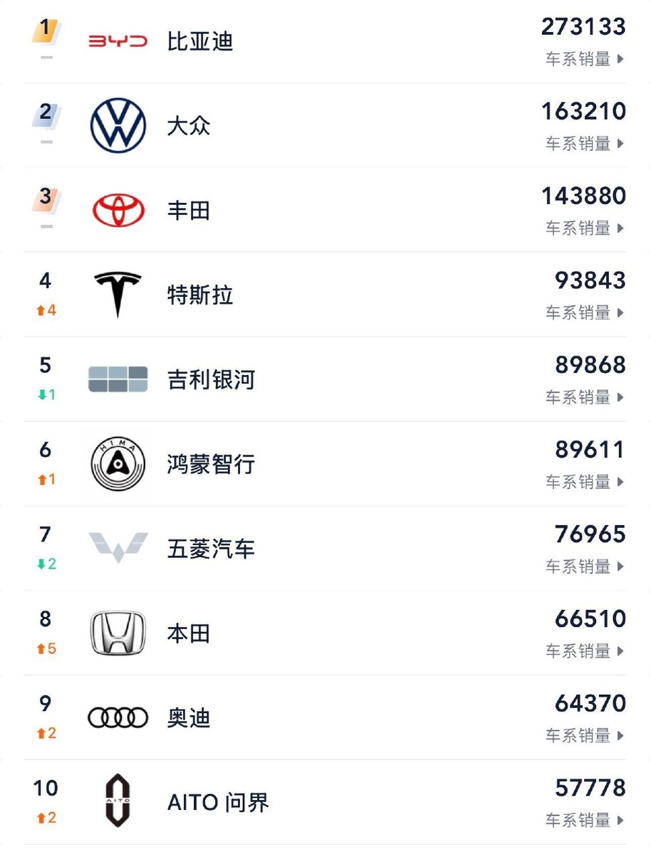 📈Продажи новых легковых автомобилей в Китае в декабре 2025 📊По итогам декабря в Китае было продано: 2 366 702 шт. Первая пятерка: 1️⃣BYD - 273 133 шт 2️⃣Volkswagen - 163 210 шт 3️⃣Toyota - 143 880 шт 4️⃣ Tesla - 93 843 шт 5️⃣ Galaxy Geely - 89 868 шт Далее: … 9 Audi - 64 370 шт … 11 Cherry - 52 730 шт 12 Changan - 52 355 шт 13 Geely - 50 555 шт 14 Xiaomi - 50212 шт … 17 BMW - 48 049 шт … 19 Lixiang - 44 246 шт 20 Mercedes- 43 674 шт … 28 ZEEKR - 26 300 шт … 39 TANK -15 105 шт … 47 Mazda - 11 705 шт … 54 KIA -7 513 шт … 87 Land Rover - 1 165 шт 🔴Для сравнения, по данным агентства «АВТОСТАТ» в России за декабрь 2025 года было продано: 136 463 новых автомобилей ; 🇰🇷🇦🇪🇨🇳 #продажановыхавтомобилейвкитае #продажиавтовроссии