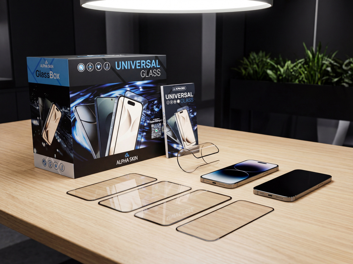 Поиск защитного стекла под конкретную модель часто отнимает кучу времени. Постоянные поиски, ошибки с размерами и лишние походы к поставщикам съедают прибыль и нервы. Бокс с универсальными стеклами решает эту проблему раз и навсегда. Что внутри и почему это удобно
