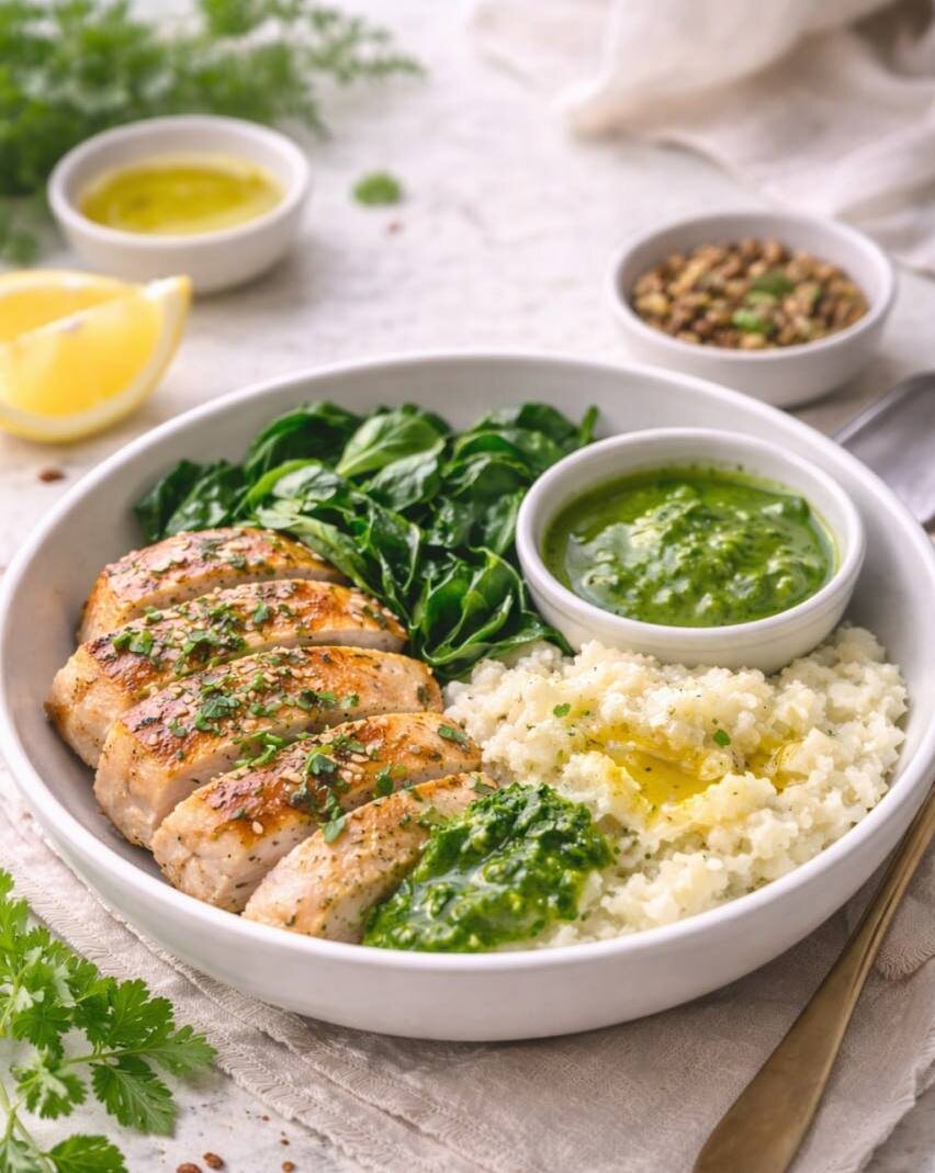 🌙 Если вечером тело устало, а мозг не останавливается, часто дело не в мыслях, а в том, что нервной системе банально не из чего восстанавливаться. Слишком лёгкий ужин, отсутствие белка или холодная еда оставляют организм в режиме напряжения. Хороший вечерний приём пищи — это тёпло, сытно и спокойно для ЖКТ. 💡 Рецепт: тёплый боул с курицей, пюре из цветной капусты и зелёным соусом Этот вариант хорошо подходит для вечера: мягкий по текстуре, насыщает и не перегружает. Ингредиенты: — куриное филе — цветная капуста — шпинат или руккола — оливковое масло — лимонный сок — щепотка соли Как готовить: Цветную капусту отварите до мягкости и пробейте блендером с ложкой оливкового масла до кремовой текстуры. Курицу запеките или слегка обжарьте на минимальном количестве масла. Зелень пробейте с каплей масла и лимонного сока до соуса. Выложите всё в тарелку тёплым. Почему это работает: — курица даёт полноценный белок для синтеза нейромедиаторов — кремовая текстура капусты снижает нагрузку н